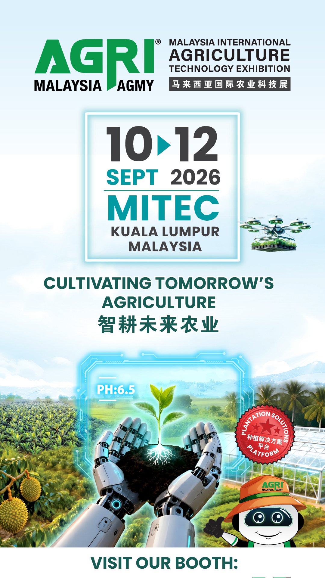Registration for Agri Malaysia 2026 is officially open! Held from 10–12 September 2026 at MITEC Kuala Lumpur, the largest B2B exhibition brings together the agriculture and commodity sectors to discover new technologies, innovative solution, and unlock collaboration opportunities. {Company Name} will be participating at Booth {XXXX} to showcase our latest advancements.